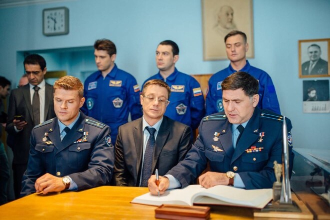 Кстати, съемки проходили в реальных интерьерах Центра управления полетами в Звездном городке и в настоящей сурдокамере — звуконепроницаемом помещении, где тренируются космонавты. А для сцен на Международной космической станции был выстроен большой павильон. Для того чтобы показать актеров в невесомости, было создано огромное количество систем подвесок. Моторизированные лебедки, скоростные дороги, система «паук», специальные кранстрелки, трюковые краны, к которым цепляли артиста, и зачастую невесомость в кадре создавалась при помощи 3-4 различных систем. С одним актером работали одновременно 3-4 человека.