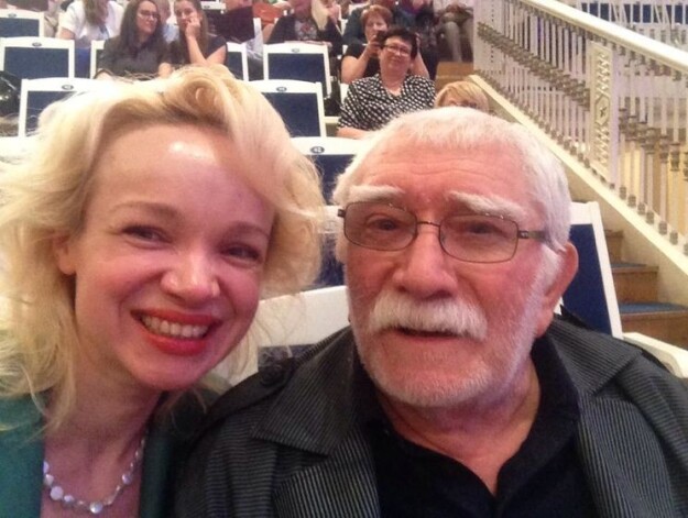 Армен Джигарханян и Виталина Цымбалюк-Романовская на открытии выставки в Риге в 2012 году