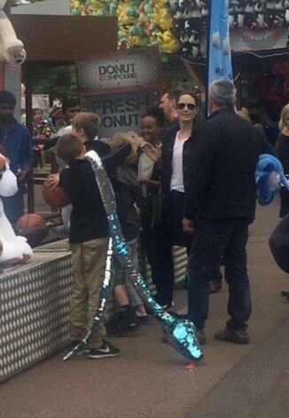 В свой день рождения Анджелина повела шестерых детей (16-летнего Мэддокса, 14-летнего Пакса, 13-летнюю Захару, 12-летнюю Шайло и девятилетних двойняшек Нокс и Вивьен) в лондонский Торп-парк.