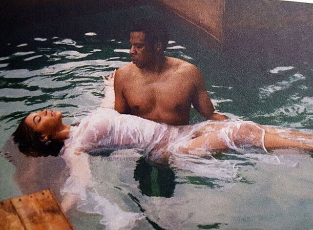 На одном из снимков влюбленные позируют обнаженными, лежа в постели в обнимку. На другом — Бейонсе топлес и в крошечных стрингах читает газету в кровати, а рядом ее супруг курит сигару. Еще на одном кадре полностью раздетая певица заходит в океан.
