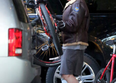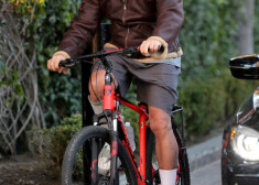 Арнольд Шварценеггер катается на велосипеде по Санта-Монике
