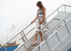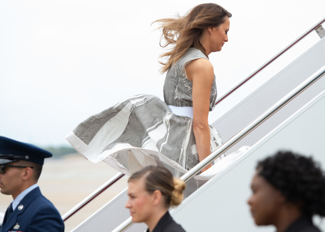 По дороге к детям с первой леди США едва не случился конфуз - порыв ветра задрал подол ее наряда, когда она поднималась по трапу самолета. Таким образом, Мелания едва не повторила знаменитую сцену из фильма "Зуд седьмого года" с Мэрилин Монро.
