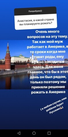 Любопытно, что на фон публикации Настасия поставила изображение Московского Кремля. Следом жена Овечкина поспешила развеять все слухи относительно будущего гражданства первенца. «В любом случае наш ребенок будет русским», – написала Овечкина.