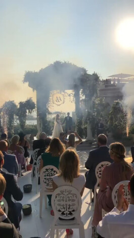 На церемонию Потанин, чье состояние оценивается в 15 миллиардов долларов, денег не пожалел – вся территория пятизвездочного отеля буквально утопала в композициях из белоснежных и розовых цветов, а гостей мероприятия встречал струнный оркестр. Миссия поддерживать градус веселья выпала Ивану Урганту. Один из самых высокооплачиваемых конферансье, к слову, берет за корпоративное выступление порядка 4 миллионов рублей (52 000 евро).