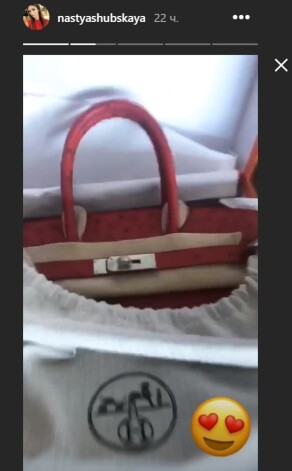 Содержимое коробки Настасья Шубская продемонстрировала следом. Оказалось, что она стала счастливой обладательницей сумки Hermes.
