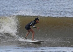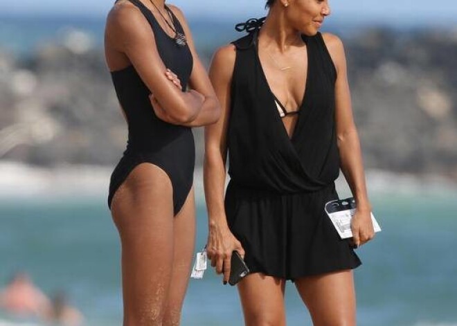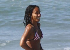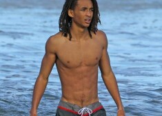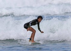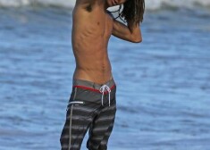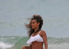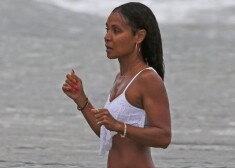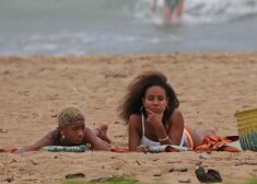 Aktieris Vils Smits ar sievu Džadu Pinketu Smitu un meitu Vilovu pludmalē.