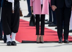 Брижит и Эммануэль Макрон в аэропорту Мэриленда