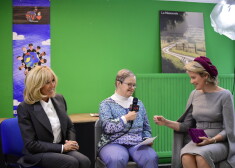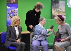 Брижит Макрон и королева Бельгии Матильда во время визита в центр для людей с нарушениями развития