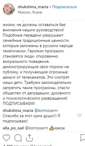 Мария Шукшина подписала петицию о закрытии шоу Андрея Малахова