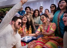 Одним из обрядов стала церемония мехенди — важный свадебный ритуал в Индии. Руки и ноги невесты расписывают хной.