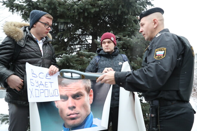 Поклонники Александра Кокорина с плакатами у здания суда, где 18 декабря рассматривалась аппеляция футболиста.