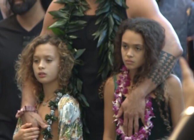 Момоа позировал фотографам вместе с детьми от супруги Лизы Боне — сыном Накоа и дочерью Лолой.
