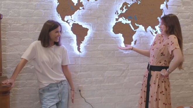 Дома у экс-ведущей «Орла и Решки» висит стилизованная карта мира, на фоне которой Регина сфотографировалась с Темниковой.