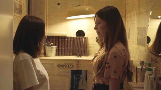 На протяжении шоу Тодоренко и Темникова перемещались по дому. Большая часть интервью прошла в гостиной, однако съёмки также шли в детской комнате. В съёмках приняли участие Влад Топалов и сын Михаил, однако лицо младенца на видео закрыли смайликом. Блиц-опрос Регина Тодоренко провела в необычном туалете – его стены обклеены газетами, а на полках стоят сочинения Иосифа Сталина.