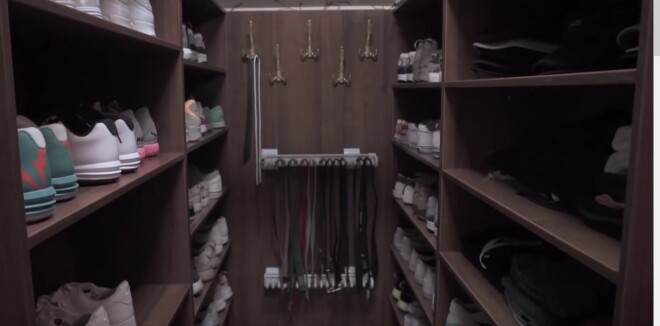Несмотря на образ хулигана, в гардеробе артиста царит порядок — майки и толстовки развешаны отдельно друг от друга, а за отдельной дверью аккуартно расставлена обувь. По словам Гуфа, большая часть кроссовок — это подарок, сделанный брендами после рекламным съемок. Футболку, в которой Алексей выступал на баттле с Птахой, он продает за миллион рублей.