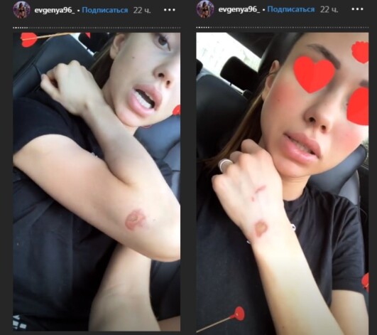Женя показала в Stories свои ссадины и объяснила, что эти гематомы и ожоги у нее появились после сильного толчка и падения на ковер.