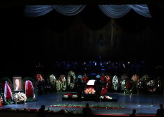 Постепенно в зал стали впускать скорбящих. На сцене стоял гроб, который буквально тонул в цветах, принесенных убитыми горем близкими и коллегами актрисы. Рядом стояли награды Элины Авраамовны времен Великой Отечественной войны: в 40-е она работала санитаркой. Местный оркестр играл траурную музыку, пока родные актрисы занимали места в помещении.