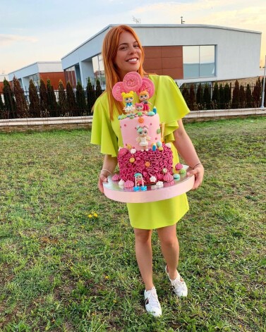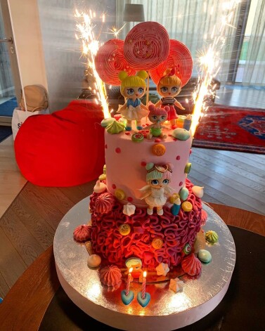 В загородном доме супруги собрали близких и друзей. Для именинницы на заказ был испечен двухъярусный торт розового цвета, украшенный леденцами и фигурками мультипликационных персонажей. Вера с удивлением смотрела на огромный десерт, когда его вынесли в зал под праздничную песню гостей. Также маленьких друзей малышки развлекали аниматоры. Всех детей вывели во двор, где им показали фокусы с голубями.