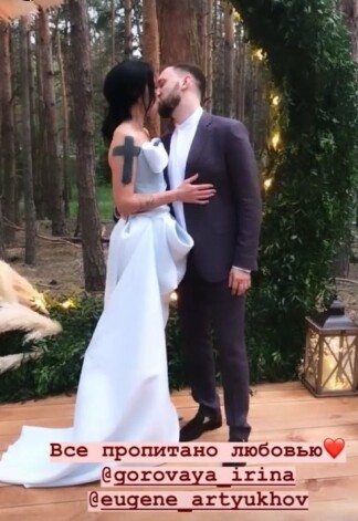 Ирина пришла на торжество в бледно-голубом платье со шлейфом. Наряд позволил ей продемонстрировать большую татуировку в виде креста на руке. Компанию на празднике Горовой составил ее новый бойфренд. Влюбленные держались за руки, страстно целовались и выглядели счастливыми. Фотографии пары опубликовали в Instagram гости свадьбы.