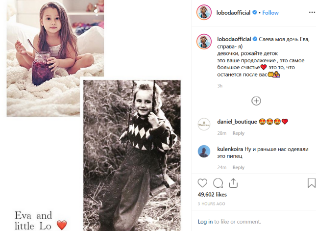 Многих подписчиков Светланы умилили снимки. А некоторые фанаты принялись интересоваться, собирается ли она рожать мальчика. «Евочка — очарование. Очень похожа на вас», «Лобода вообще не изменилась», «Это самый милый пост», «Какая красивая Ева. Светлана, а за мальчиком пойдёшь?» — пишут фолловеры.