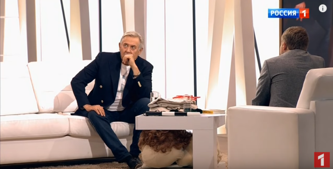 К Корчевникову пришел актер Юрий Стоянов. Он сообщил, что смог быстро похудеть благодаря участию в новом проекте. "В июне прошлого года я был таким", – показал Стоянов на собственное архивное фото на экране студии.