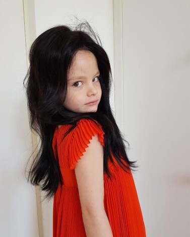 Недавно Алена Шишкова приняла участие в фотосессии. Для съемки модель с помощью париков перевоплотилась из блондинки в брюнетку и бронзовую шатенку. Алиса тоже захотела поэкспериментировать с образами. Девочка, которая с рождения является блондинкой, примерила мамины парики.