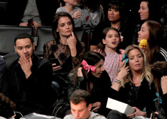Сури Круз с мамой Кэти Холмс на баскетбольном матче