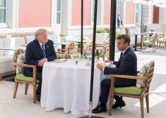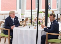 Дональд и Мелания Трамп, Эммануэль и Брижит Макрон на саммите во Франции