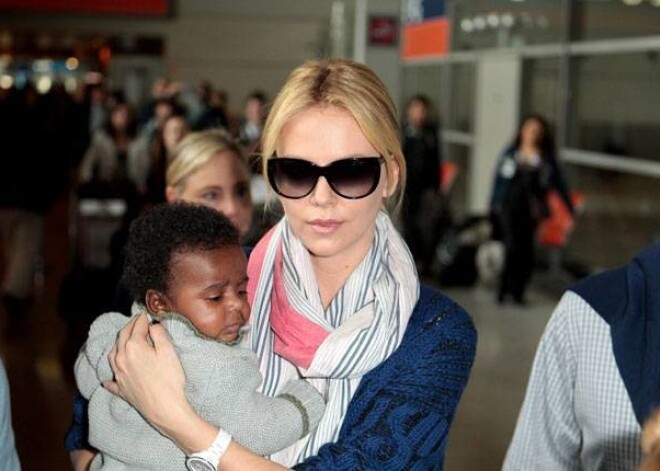 Шарлиз Терон с сыном Джексоном в аэропорту