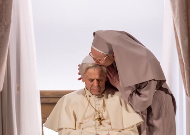 Михаил Барышников сыграет самого Бенедикта XVI. Актёр Нового Рижского театра Каспар Знотиньш сыграет секретаря папы, а Гуна Зариня, также из Нового Рижского театра, предстанет в постановке как сестра Табиана. Написанный и поставленный Алвисом Херманисом «Белый вертолёт» будет исполняться на смеси английского, итальянского, польского, латинского и немецкого языков с синхронным переводом.