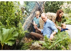 Герцогиня Кэтрин и принц Уильям с детьми в саду