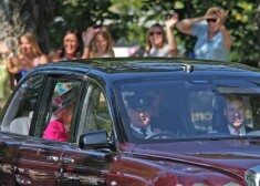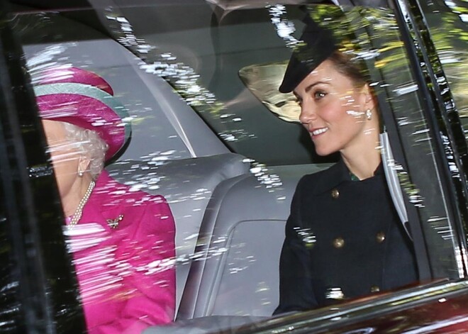 Герцогиня Кэтрин, принц Уильям и Елизавета II по дороге в церковь в Шотландии 25 августа 2019 года