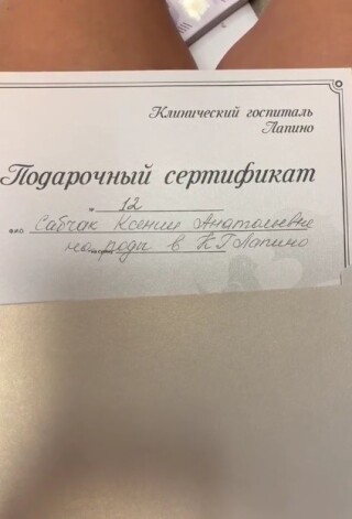 Сегодня Ксения добралась до заветных коробочек. Собчак показала подписчикам самый остроумный подарок — сертификат на роды в подмосковной клинике Лапино.