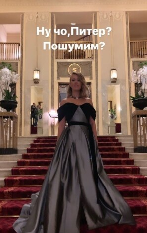 Ожидался скорый приезд Ксении Собчак с мужем. Ксения в своих instagram-stories незадолго до выезда на празднование выложила видео, где можно оценить ее образ, созданный для свадьбы Бондарчука и Андреевой.
