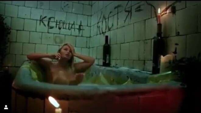 В своем ролике Дана тоже позировала обнаженной в ванной, однако в грязной и обшарпанной. На запачканной плитке виднелась надпись «Ксюша + Костя = любовь» — отсылка к Ксении Собчак и ее супругу Константину Богомолову. В тусклом свете зажженных свечей Борисова разговаривала по телефону.