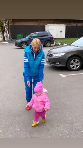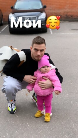 Лера выбрала для прогулки синий спортивный костюм и жилетку в тон. Популярная блондинка поделилась милым кадром супруга с дочерью. Хоккеист позировал с ней в обнимку.