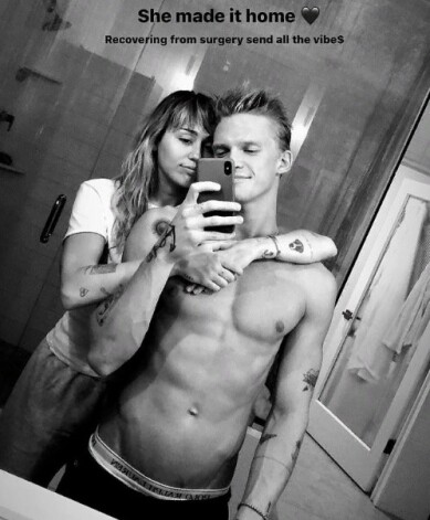 Актриса заключила бойфренда в объятия. Майли поделилась радостью, что уже вернулась домой. «Восстанавливаюсь после операции. Всем добра», — пожелала Сайрус.