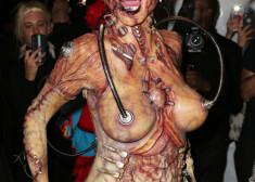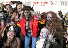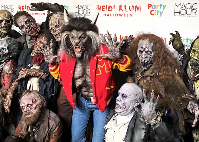 Хайди приготовила для вечеринки в честь Хеллоуина действительно жуткий костюм. Надеть его было непросто: силиконовое облачение вместе с пластическим гримом помогала создавать целая команда костюмеров и гримеров. Процесс длился целый день, причем на глазах у публики и приглашенных фотографов: в витрине Amazon Store в Нью-Йорке.