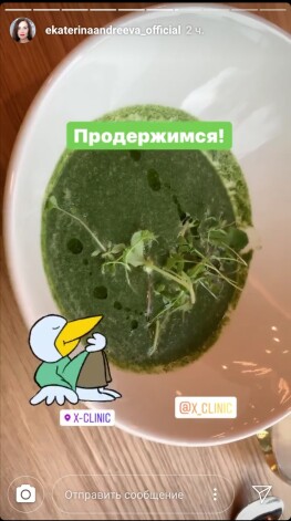 Теперь к ним присоединилась и Екатерина Андреева — когда-то ведущая практиковала интервальное голодание 16/8, но в этот раз решила не есть под присмотром специалистов в питерской клинике адаптационной медицины.