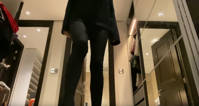 В доме несколько этажей. Гардеробная расположена внизу и состоит из огромного пространства для одежды, обувь Виктория хранит отдельно. Снимая влог, Боня как раз собиралась на встречу, поэтому искала комфортный и вместе с тем стильный образ. Ее выбор остановился на черном свитере и модных брюках-сапогах. «Я покупаю дорогие вещи, но надеваю один-два раза максимум, или вообще не надеваю. Эти брюки, к примеру, надевала два раза», — рассказала Виктория.