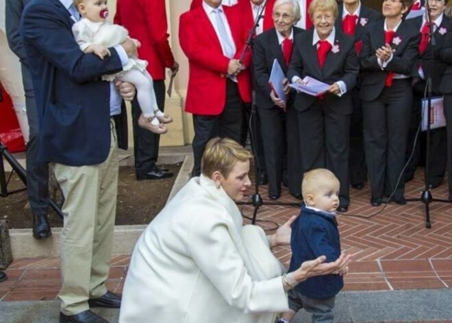 Габриэлла и Жак родились 10 декабря 2014 года — и уже достаточно подросли для того, чтобы вместе с родителями появляться на публичных мероприятиях и позировать для поздравительных открыток – в прошлом году они впервые появились на поздравительной карточке. В этом году традиция была продолжена и близнецы, недавно отметившие свой второй день рождения, вновь появились перед фотографом. Фотосессия проходила в гостинной дворца, на фоне видет портрет матери Альбера – покойно княгини Грейс Келли. Их славящаяся своим безупречным вкусом мать выбрала для фотосессии золотистое платье Ralph Lauren и туфли Jimmy Choo. «Пусть праздничный сезон, также как и Новый, 2017 год, будут полны мира и добра!», - гласило поздравление.