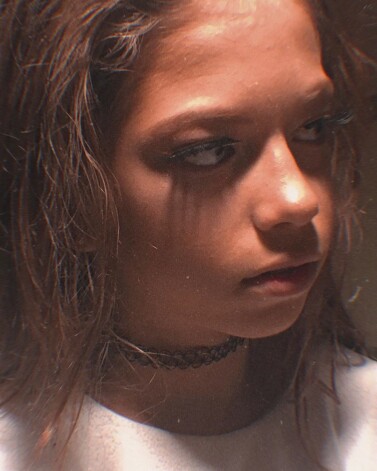В кадре Сара Киперман запечатлена в совсем взрослом образе. Она использовала длинные накладные ресницы, нанесла золотую тушь на веки и немного хайлайтера. На шее у девочки красуется чокер.