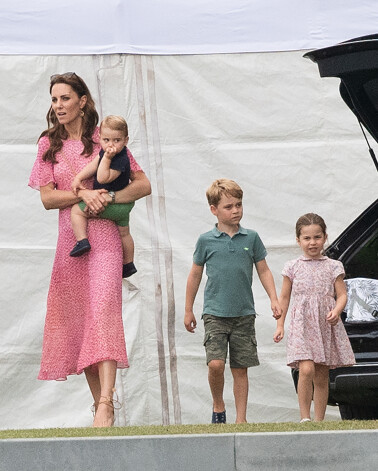 Герцогиня Кэтрин и принц Уильям с детьми в саду