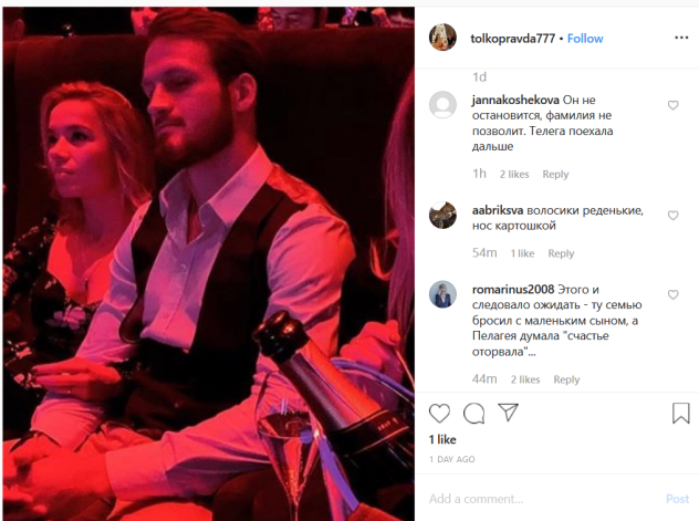 В 2018-м хоккеиста уже подозревали в измене после фотографии его поцелуя с брюнеткой Кариной в баре. Пелагея тогда опровергла неверность супруга. Мужа Пелагеи застукали с другой женщиной