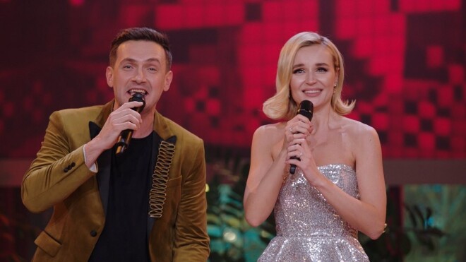 Юморист, некоторое время назад скинувший около 30 килограммов веса, блистал на сцене в бархатном пиджаки и со стильной прической. Компанию в одном из номеров ему составила певица Полина Гагарина.