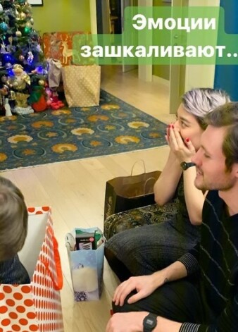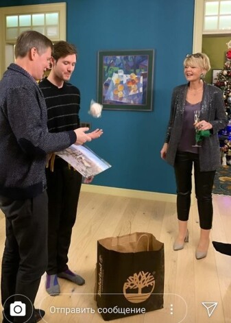 Сын подарил Игорю Гордину яркие жёлтые носки, а Таисия получила в подарок гитару.