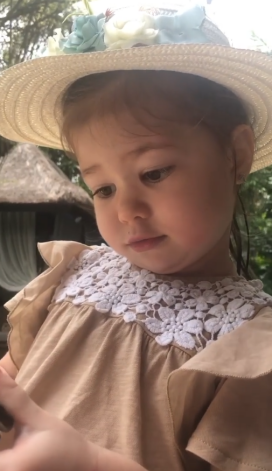 Так, на одном из них ее младшая дочь Белла, рожденная в браке с актером Гелой Месхи, примеряет большие солнечные очки от известного дизайнерского бренда, а затем решает обменяться ими с Екатериной. Взамен девочка просит телефон и начинает снимать звездную маму на видео.