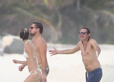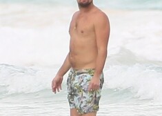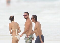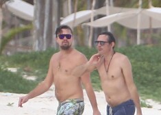Леонардо ДиКаприо с друзьями на пляже Канкуна