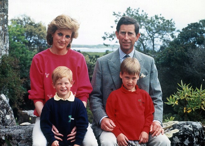 Princese Diāna ar dēliem princi Viljamu un princi Hariju.