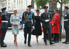 Герцогини Кэтрин, Меган и Камилла и принцы Чарльз, Уильям и Гарри на службе в Вестминстерском аббатстве